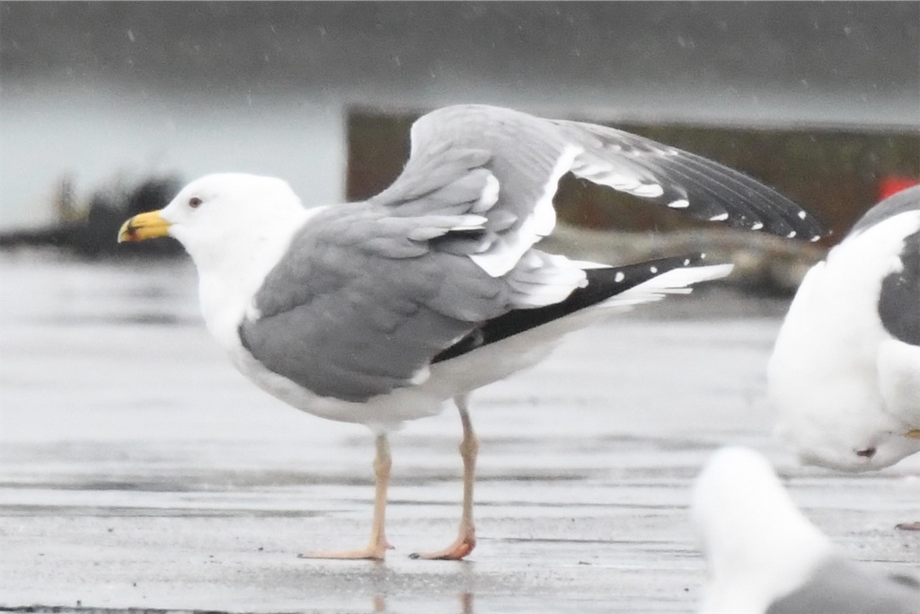 南風がとても強い雨の日に、標津港北側の空き地に大型100羽ほどに混ざり降りていた。体格、嘴の黒斑、突出、ムーンの狭さ、初列の黒色部の広さなど文句の付けようのないモンゴルセグロカモメだった。初列風切の黒色部はp3まで見られた。