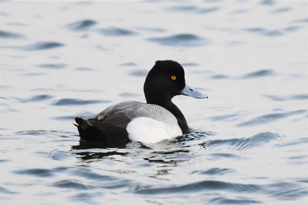 越冬期は安定して少数のスズガモが入り、沖が荒れた日などには多数のスズガモ群が入ります。また春の移動期にはまとまった数のスズガモ群が滞在し、2023年4月にはコスズガモ1羽が混ざっていました。